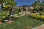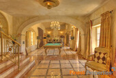 - on the ground floor an entrance hall, a kitchen with a "La Cornue" oven as a cooking island, a walk-in cold storage room, access to a covered terrace, a dining room, an impressive living room with fireplace, high ceiling and pool table, TV room with fireplace, a guest toilet and a royal master suite with bedroom, lounge and bathroom, as well as a walk-in dressing room. The master bathroom has a Jacuzzi tub, shower and separate toilet with bidet and double vanity. No expense was spared on marble and gold-plated fittings.