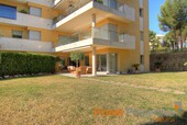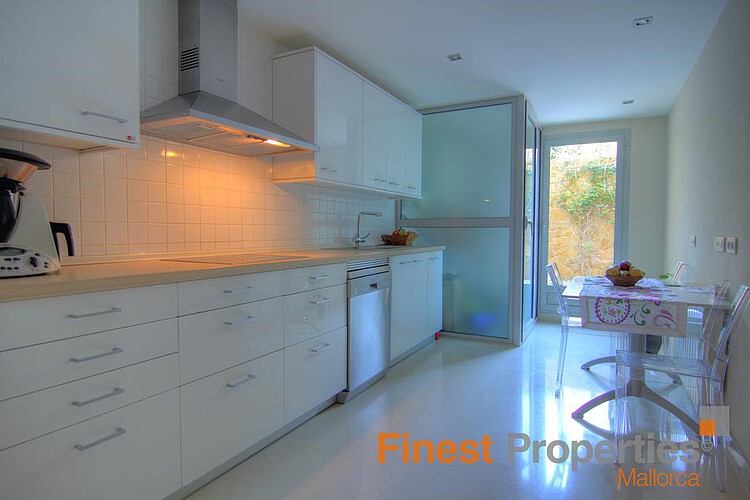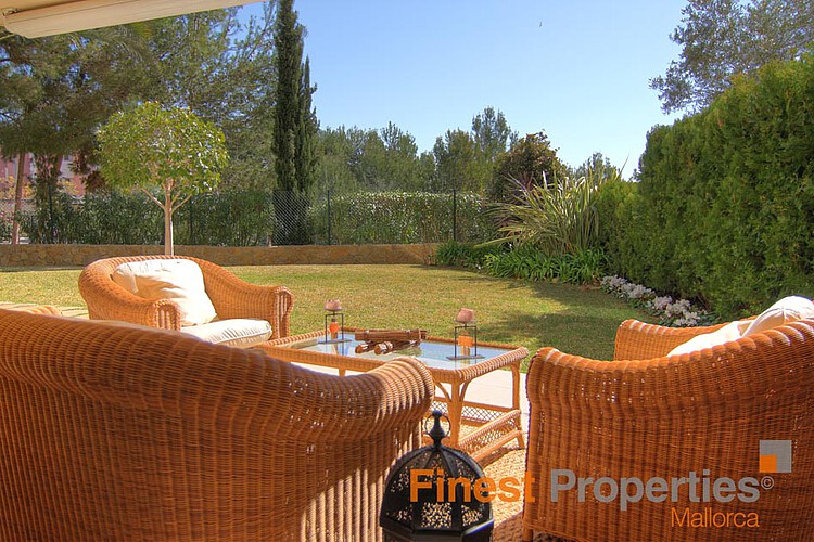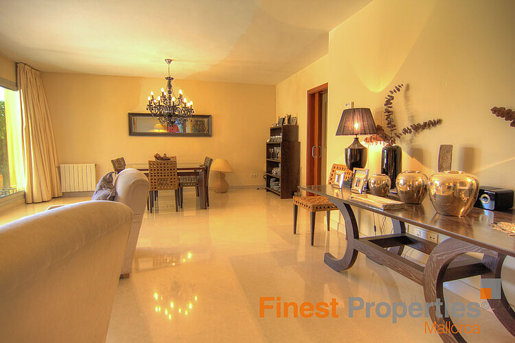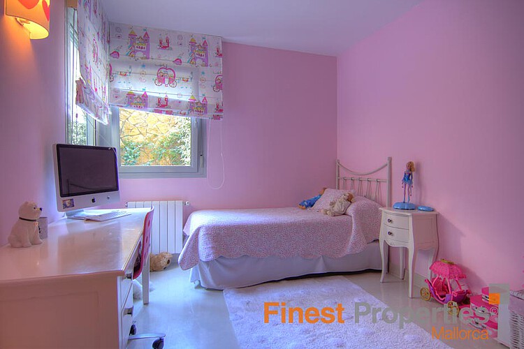This beautiful garden apartment is located in a sought-after residential community with fantastic swimming pool in Sol de Mallorca. The apartment has a living area of 200 m², a covered terrace of 20 m² and a marvelous private garden of 400 m². The living area is divided into a spacious living / dining room with access to the terrace, dining area, fully equipped kitchen with adjoining laundry room, guest bathroom and 4 bedrooms with 3 bathrooms en suite. Two bedrooms have also access to the terrace.