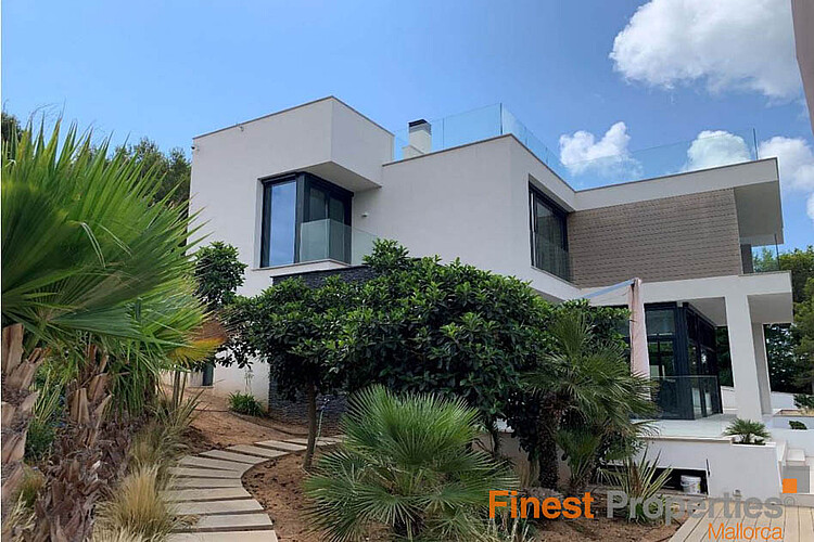 The villa was built in 2024 on a plot of approx. 1,400m² and offers 680m² living space a living-dining room, an open modern kitchen, 5 bedrooms, 7 bathrooms, a guest toilet and a utility room on 2 floors. The high-quality equipment includes underfloor heating (heat pump), air conditioning h/c and panoramic windows. In the landscaped Mediterranean garden there is an outdoor pool surrounded by sunbathing areas for relaxation. A garage offers space for 2 cars.