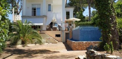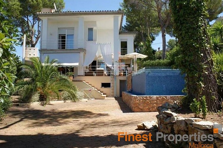 The modern styled villa was built in 1995 and offers on 2 floors with about 260m² of living space. On the ground floor it has an entrance hall, an office room (bedroom), a bathroom with guest toilet, a kitchen and a living-dining room. On the 1st floor the villa has 3 bedrooms and a bathroom. In the landscaped garden is still a pool. Features include double glass windows and oil central heating.