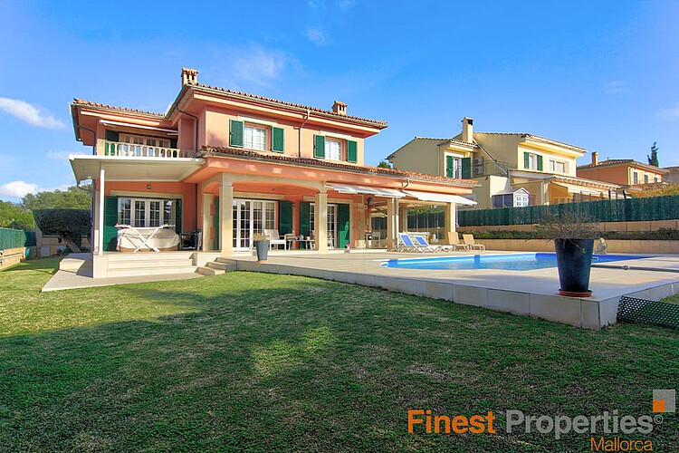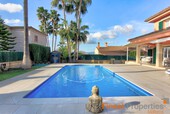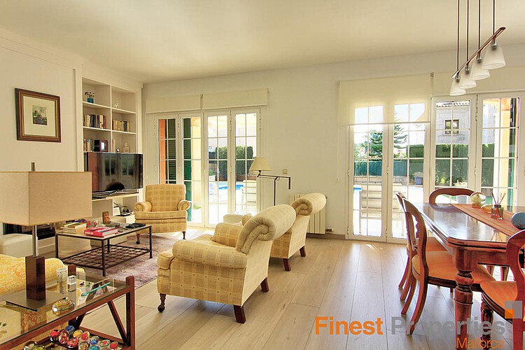 This well-maintained detached house is located in the sought-after residential area of Sant Marcal in the municipality of Marratxi and sits on a plot of approximately 820 m². Built in 2000, it received new bathrooms and a new thermal storage tank in 2023. The approximately 275 m² of living space is spread over two floors and includes a living room, conservatory/dining room, kitchen, utility room, pantry, four bedrooms, and two bathrooms. Features include gas central heating (radiators), air conditioning (heating and cooling) in all rooms, built-in wardrobes in the bedrooms with teak doors, exterior windbreaks, aluminum shutters, and a fitted kitchen. The landscaped, well-maintained garden also features an outdoor pool with salt water and disinfection. The garage provides parking for one car. This is an ideal house for families with children and is well-suited for year-round living. Schools, sports facilities, a hardware store, and various supermarkets are in the immediate vicinity. The Fashion Outlet Center is only 2 km away.