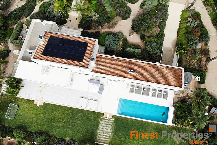 The property extends over three levels and impresses with its spacious living and sleeping areas as well as a fully equipped, elegantly integrated office space. The focal point of the outdoor area is the impressive 12 x 4 metre infinity pool, offering unobstructed views of Palma and the shimmering Mediterranean.
