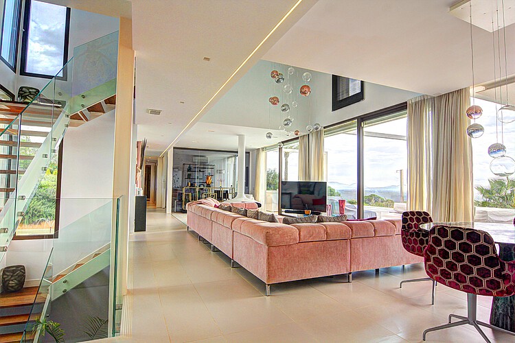 The villa “Sa Casa Blanca” is perched in an elevated position on a mountain ridge in the exclusive urbanisation of Puntiró, showcasing an architectural masterpiece of modern design. From here, you can enjoy breathtaking panoramic views over the sea, the city of Palma, and the majestic Tramuntana Mountains.