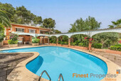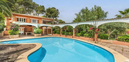 This house is situated on a plot of approximately 1,060 m² near a primary school in Santa Ponsa and was built in 1984. The living area spans approximately 350 m² and is spread over two levels. The ground floor comprises the entrance hall, one bedroom, and one bathroom. The first floor features a living-dining room, a kitchen, three bedrooms, two bathrooms, and access to the roof terrace. The garage has space for two cars. Outside, there is a swimming pool surrounded by sun terraces. This property is also interesting for investors looking to renovate and modernize. Further pictures are available upon request.