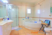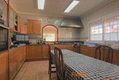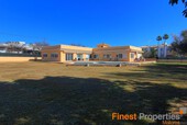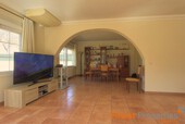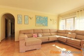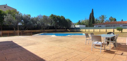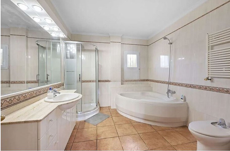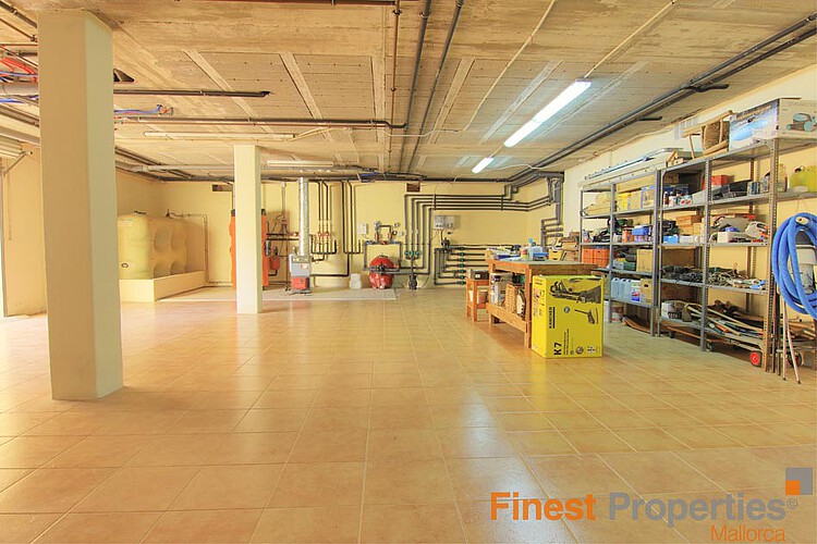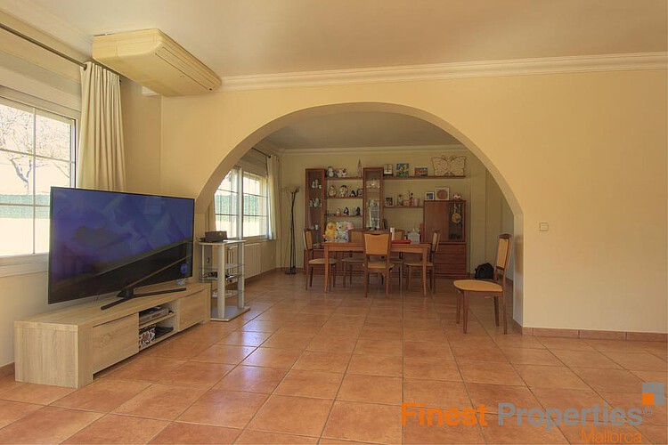 This bungalow is situated on a level plot of approximately 2.400 m² in a central location in Santa Ponsa. The supermarket and various restaurants and cafes are just a 5-minute walk away. Built in 1998, this bungalow offers approximately 270 m² of living space, including a large, light-filled living/dining room, a spacious eat-in kitchen with a pantry, 6 bedrooms, and 4 bathrooms. The basement, also approximately 270 m², houses the pool equipment, oil-fired central heating system, hot water storage tank (powered by a solar thermal system), and a large garage. The ground floor offers ample space for a party room, gym, spa, or home theater. Features include air conditioning (heating/cooling), Klimalit aluminum windows, a solar system for hot water, and oil-fired central heating (radiators). The level garden features a 10x5m swimming pool surrounded by a sun terrace. The bungalow can be extended by another floor and will be sold unfurnished
